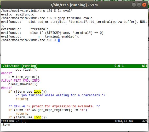 The main new feature of Vim 8.1 is support for running a terminal in a Vim